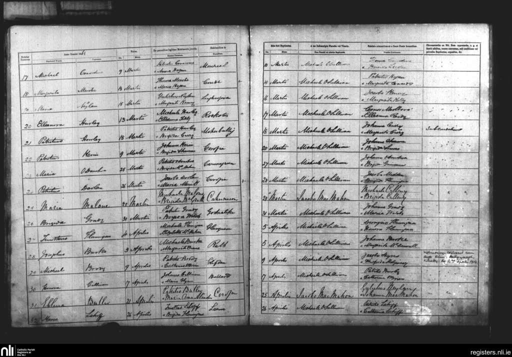 Rath; County of Clare; Diocese of Killaloe. Baptisms, Mar. 1868 to Apr. 1868