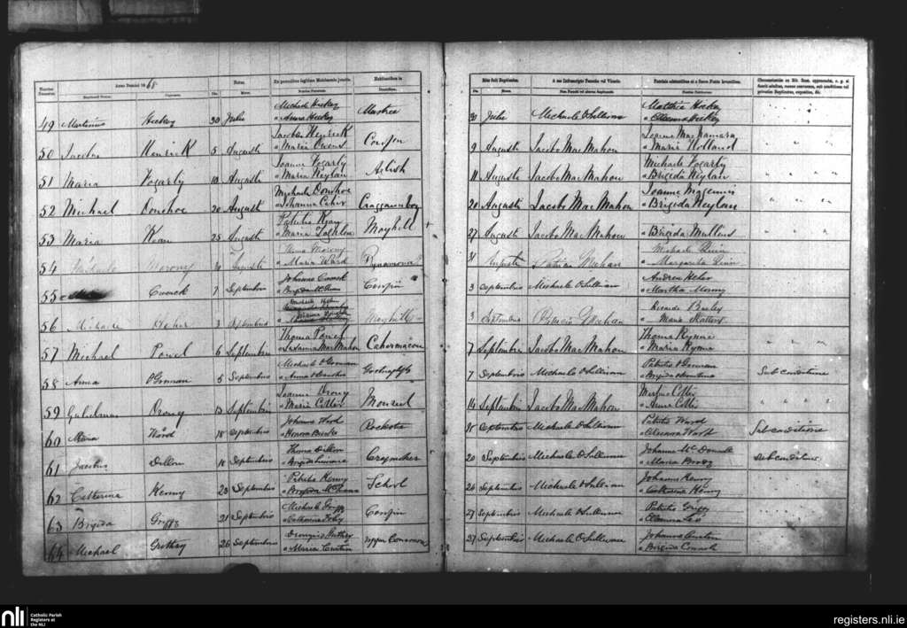 Rath; County of Clare; Diocese of Killaloe. Baptisms, July 1868 to Sep. 1868