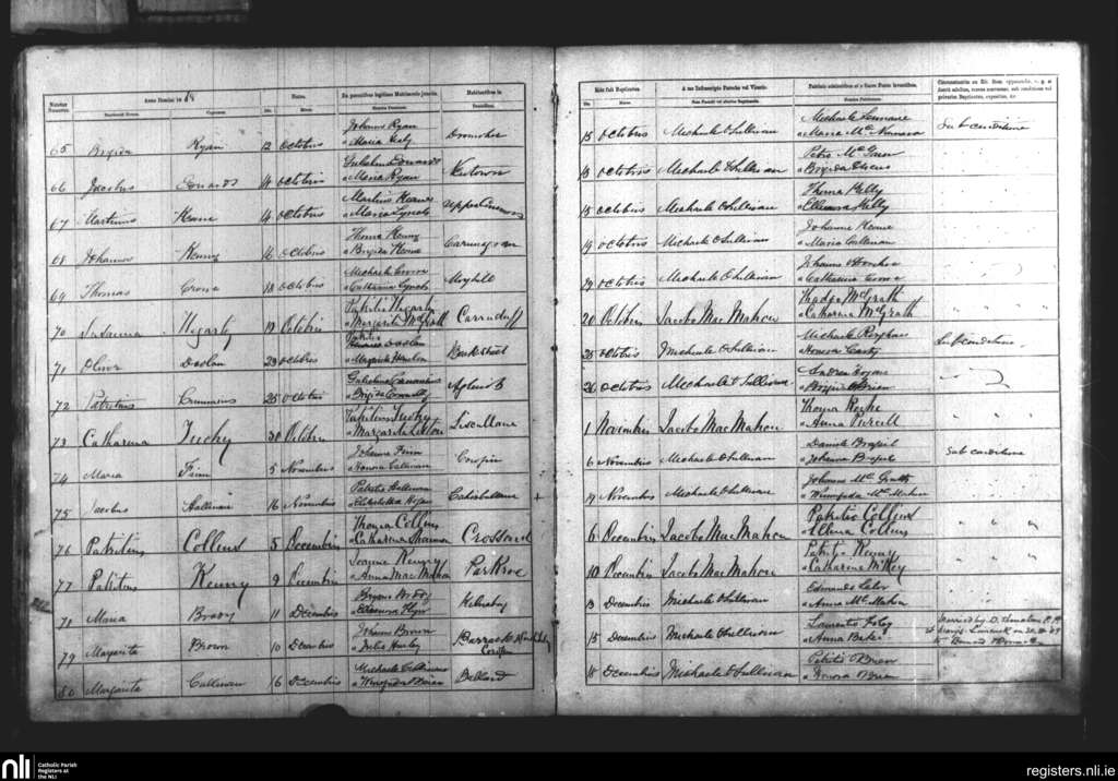 Rath; County of Clare; Diocese of Killaloe. Baptisms, Oct. 1868 to Dec. 1868