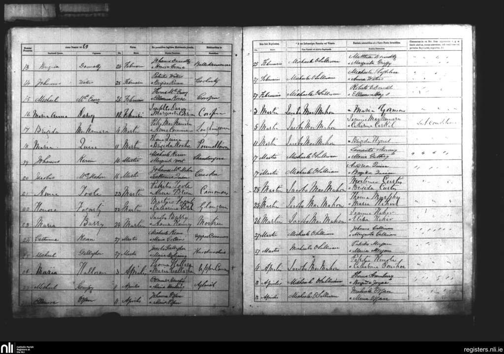 Rath; County of Clare; Diocese of Killaloe. Baptisms, Feb. 1869 to Apr. 1869