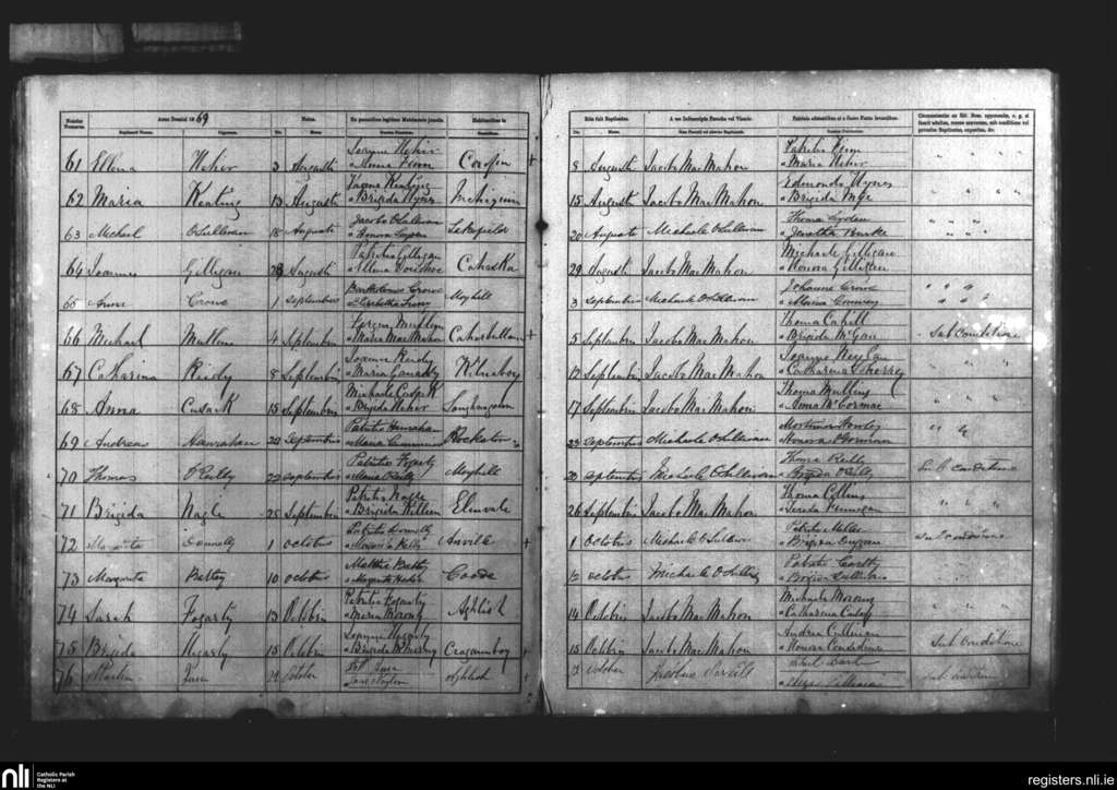 Rath; County of Clare; Diocese of Killaloe. Baptisms, Aug. 1869 to Oct. 1869