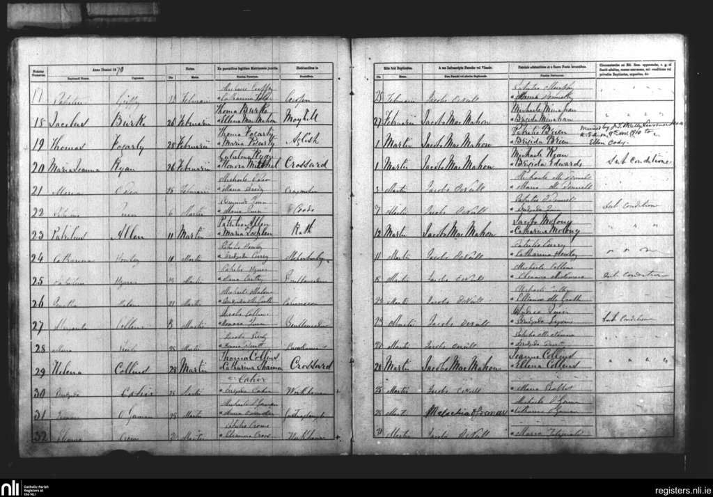 Rath; County of Clare; Diocese of Killaloe. Baptisms, Feb. 1870 to Mar. 1870