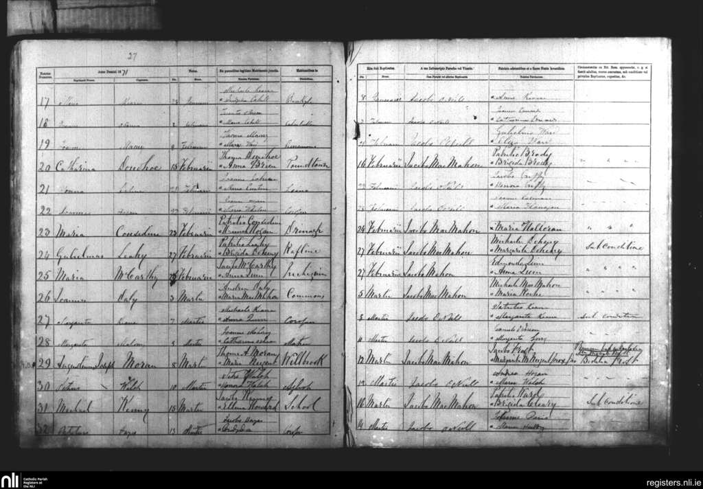Rath; County of Clare; Diocese of Killaloe. Baptisms, Jan. 1871 to Mar. 1871