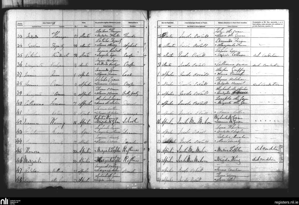 Rath; County of Clare; Diocese of Killaloe. Baptisms, Mar. 1871 to Apr. 1871