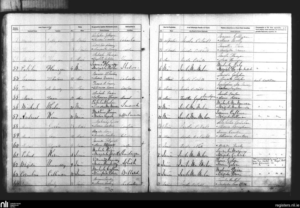 Rath; County of Clare; Diocese of Killaloe. Baptisms, Apr. 1871 to June 1871
