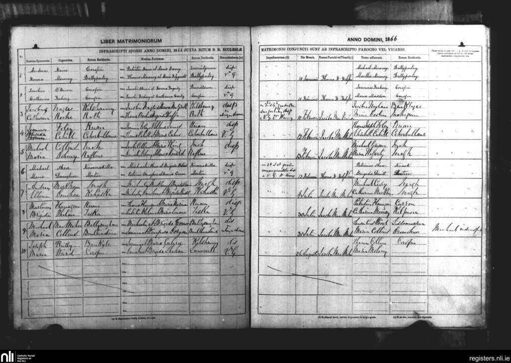 Rath; County of Clare; Diocese of Killaloe. Marriages, Jan. 1866 to Aug. 1866