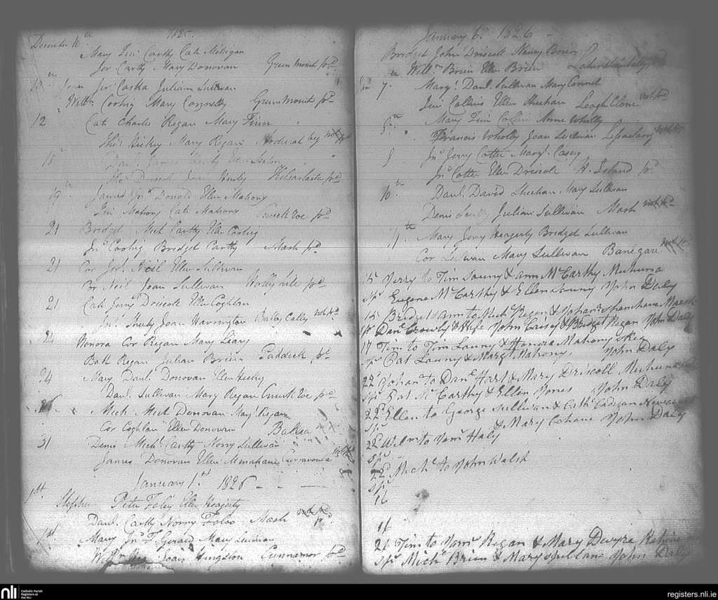 Aughadown; County of Cork; Diocese of Cork and Ross. Baptisms, Dec. 1825 to Jan. 1826