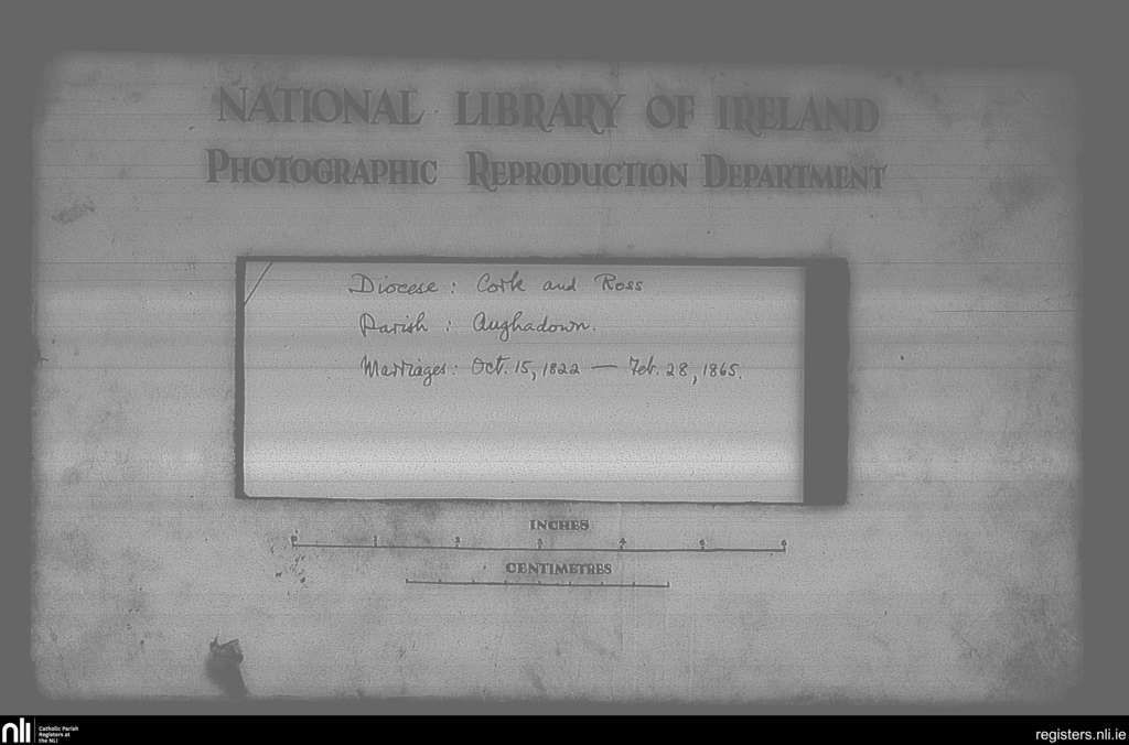 Aughadown; County of Cork; Diocese of Cork and Ross. Marriages