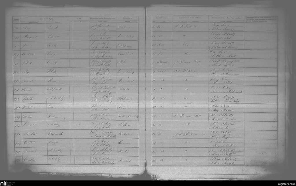 Aughadown; County of Cork; Diocese of Cork and Ross. Baptisms, Feb. 1872 to Mar. 1872