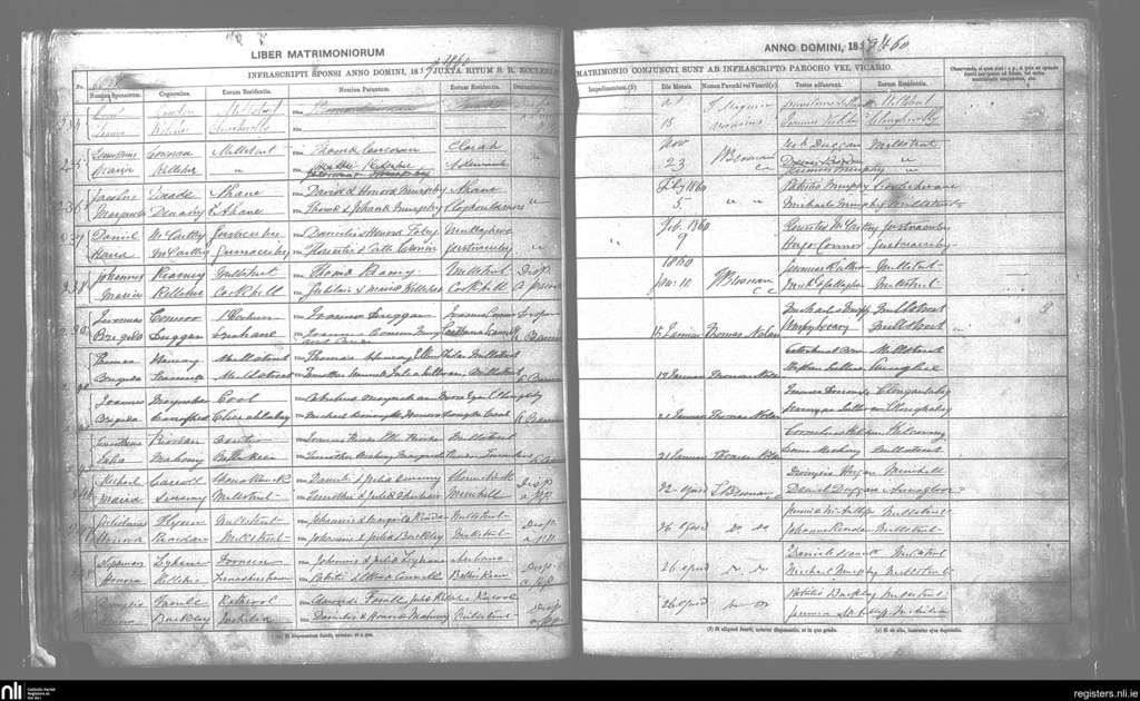 Millstreet; County of Cork; Diocese of Kerry. Marriages, Jan. 1860 to Nov. 1860