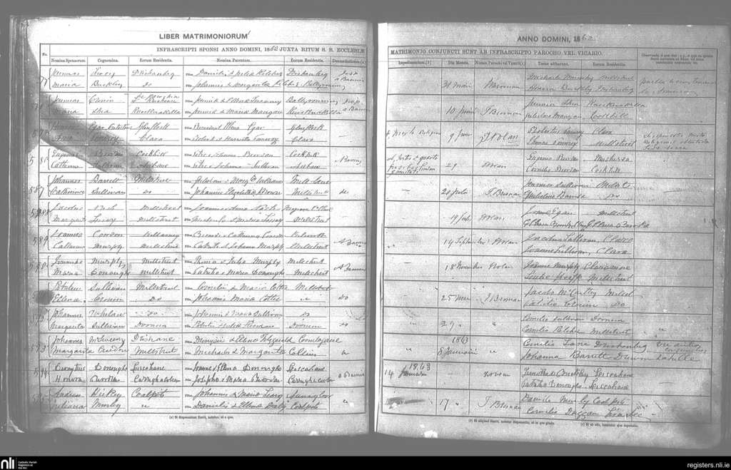 Millstreet; County of Cork; Diocese of Kerry. Marriages, May 1862 to Jan. 1863