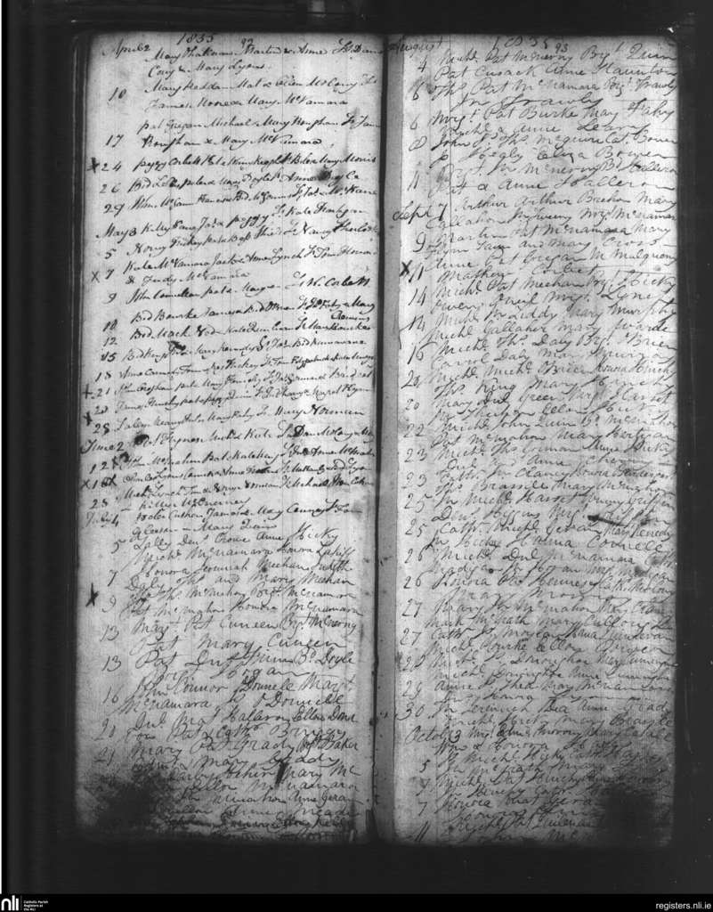 Newmarket-on-Fergus; County of Clare; Diocese of Killaloe. Baptisms, July 1833 to Dec. 1833