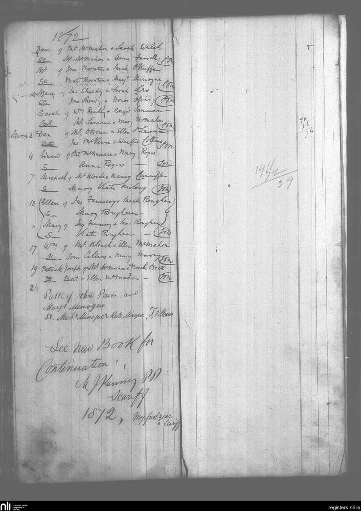Scarriff; County of Clare; Diocese of Killaloe. Baptisms, Feb. 1872 to Mar. 1872