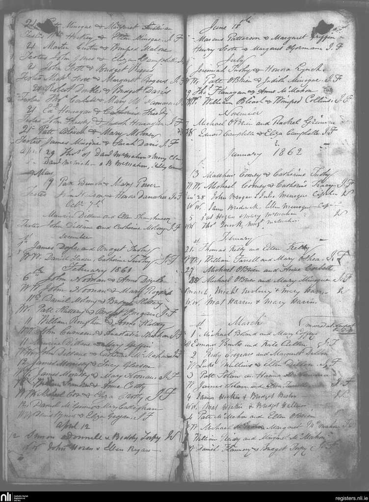 Scarriff; County of Clare; Diocese of Killaloe. Marriages, Feb. 1860 to Mar. 1862