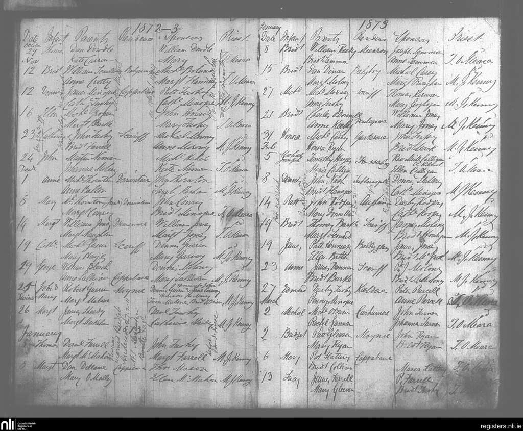 Scarriff; County of Clare; Diocese of Killaloe. Baptisms, Marriages, Oct. 1872 to Feb. 1919