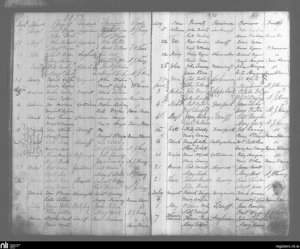 Scarriff; County of Clare; Diocese of Killaloe. Baptisms, Marriages, Mar. 1873 to Feb. 1913