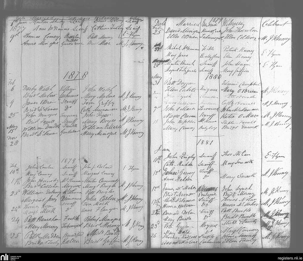 Scarriff; County of Clare; Diocese of Killaloe. Marriages, June 1877 to Jan. 1881