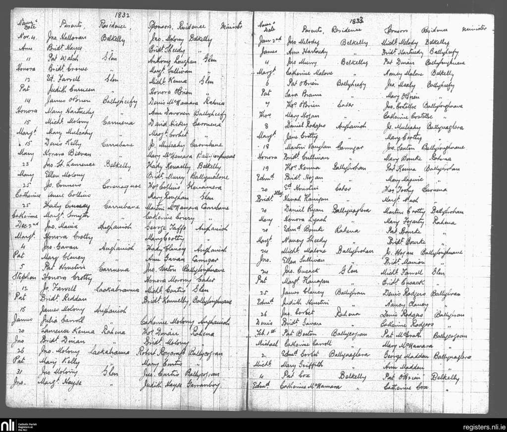 Ogonnelloe; County of Clare; Diocese of Killaloe. Baptisms, Nov. 1832 to Feb. 1833