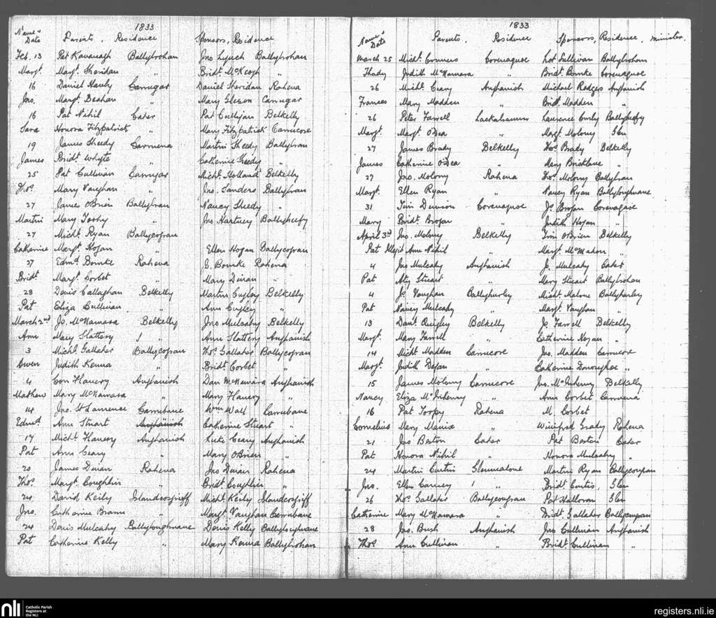 Ogonnelloe; County of Clare; Diocese of Killaloe. Baptisms, Feb. 1833 to Apr. 1833
