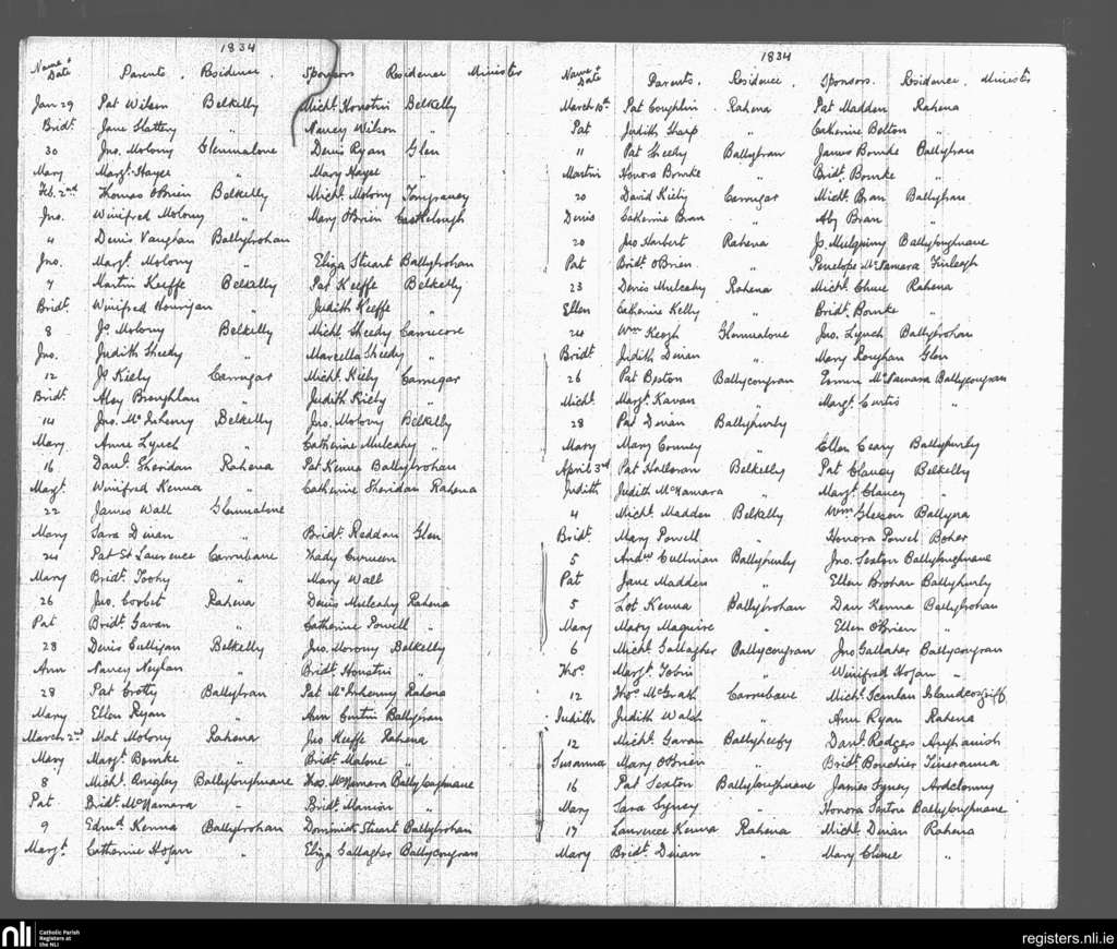 Ogonnelloe; County of Clare; Diocese of Killaloe. Baptisms, Jan. 1834 to Apr. 1834