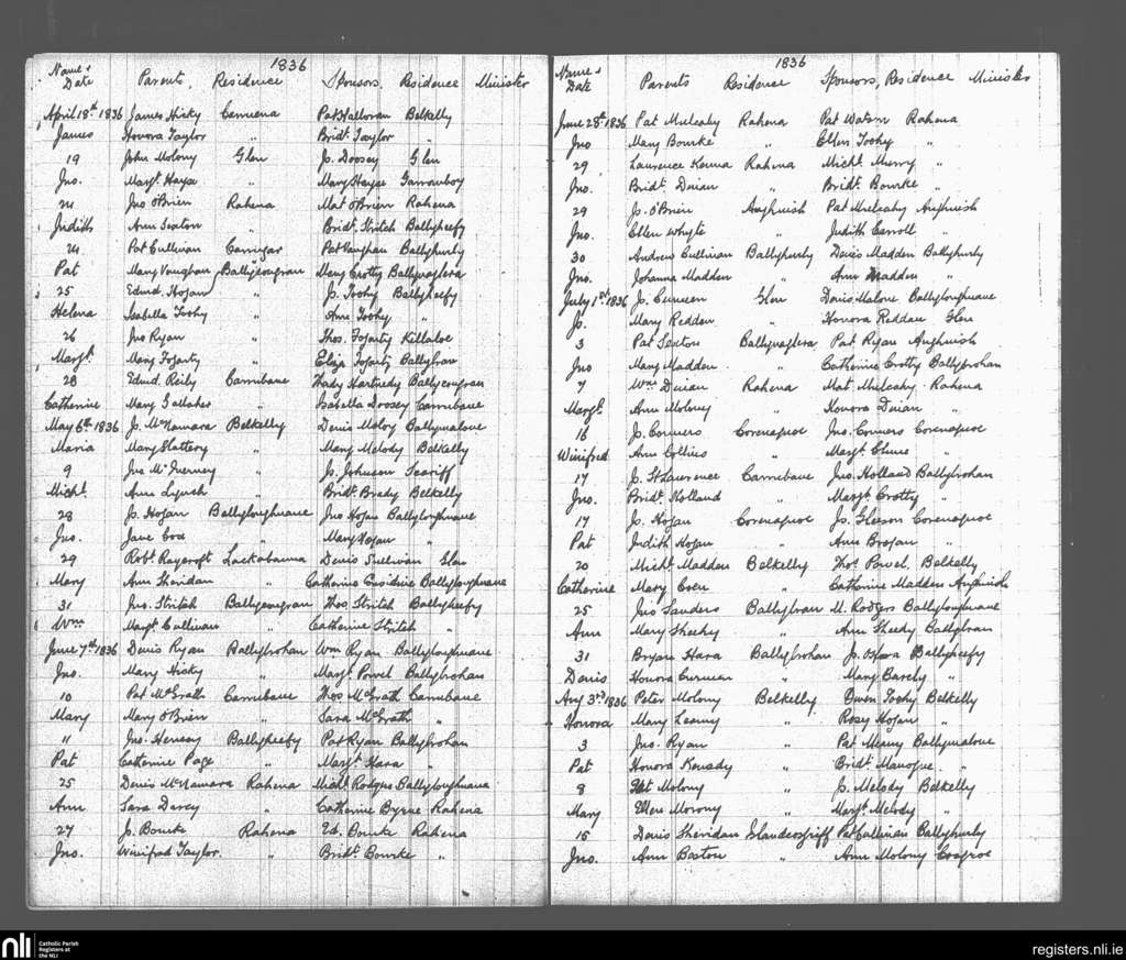 Ogonnelloe; County of Clare; Diocese of Killaloe. Baptisms, Apr. 1836 to Aug. 1836