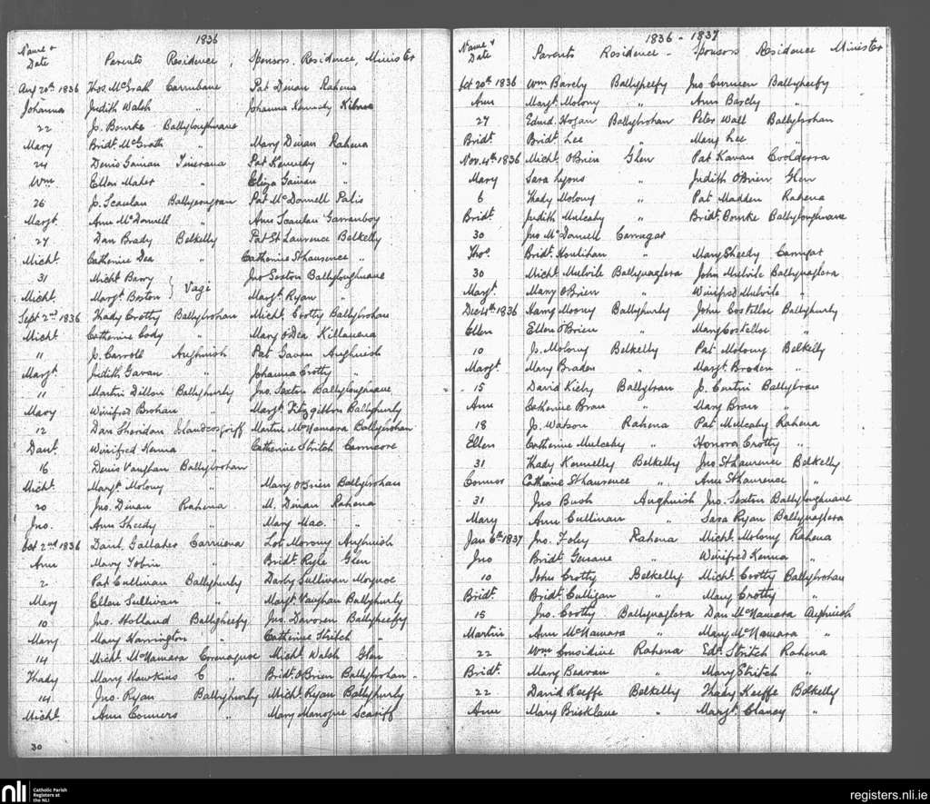 Ogonnelloe; County of Clare; Diocese of Killaloe. Baptisms, Aug. 1836 to Jan. 1837