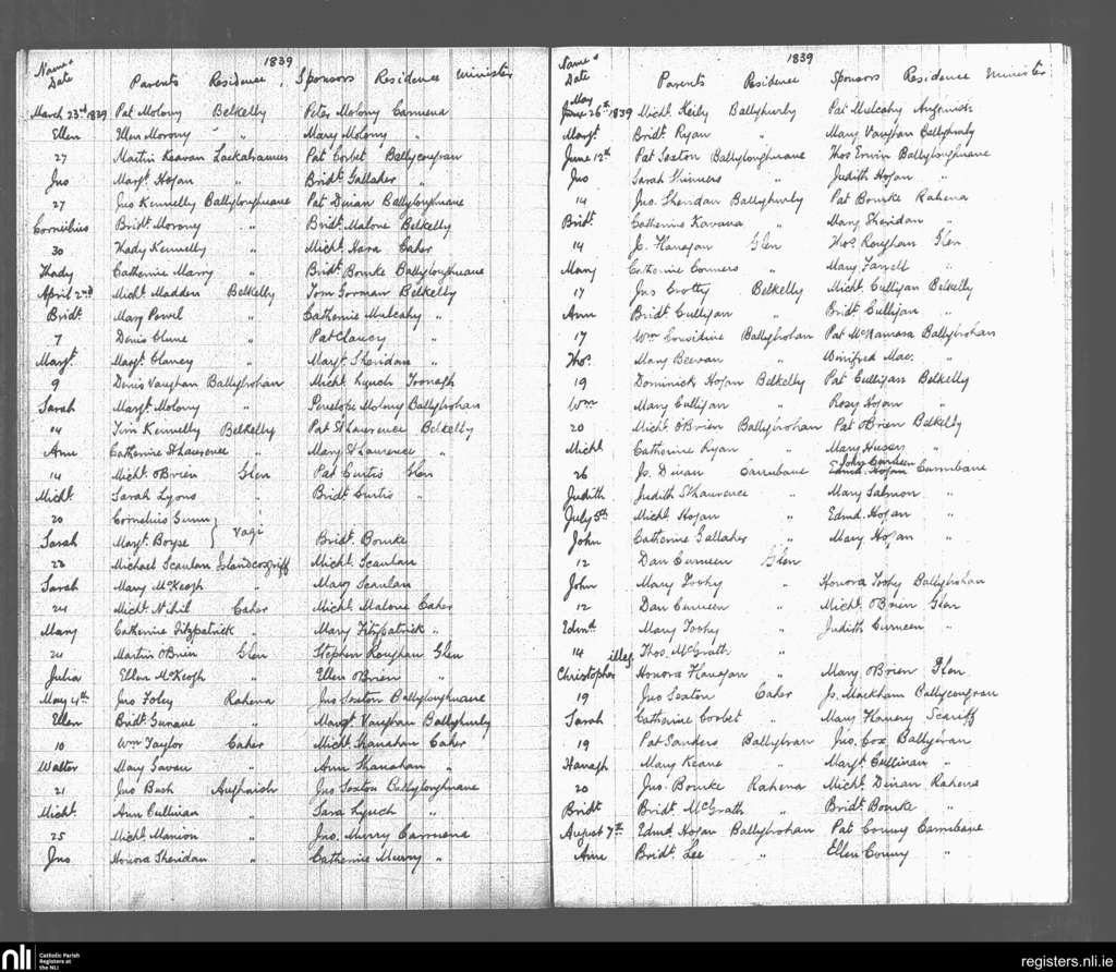 Ogonnelloe; County of Clare; Diocese of Killaloe. Baptisms, Mar. 1839 to Aug. 1839