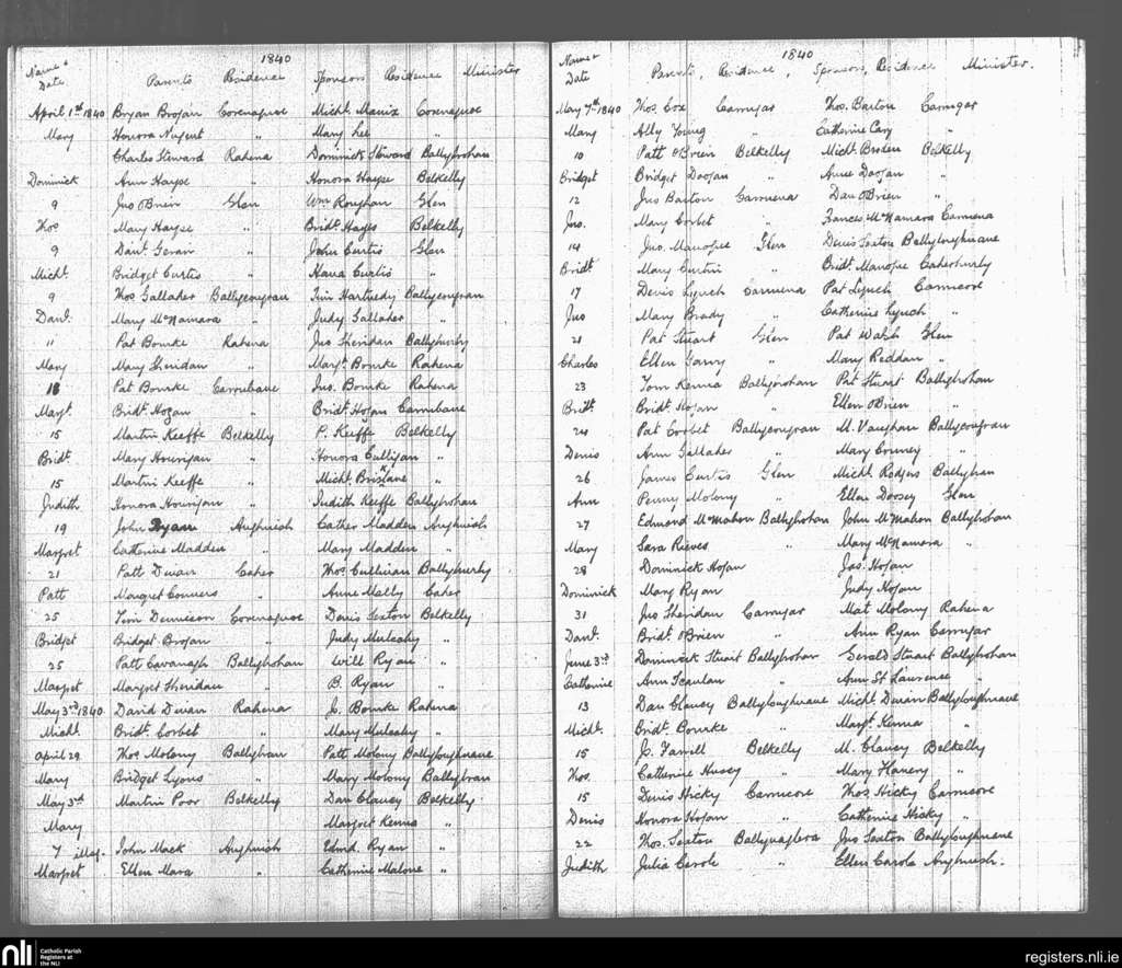 Ogonnelloe; County of Clare; Diocese of Killaloe. Baptisms, Apr. 1840 to June 1840