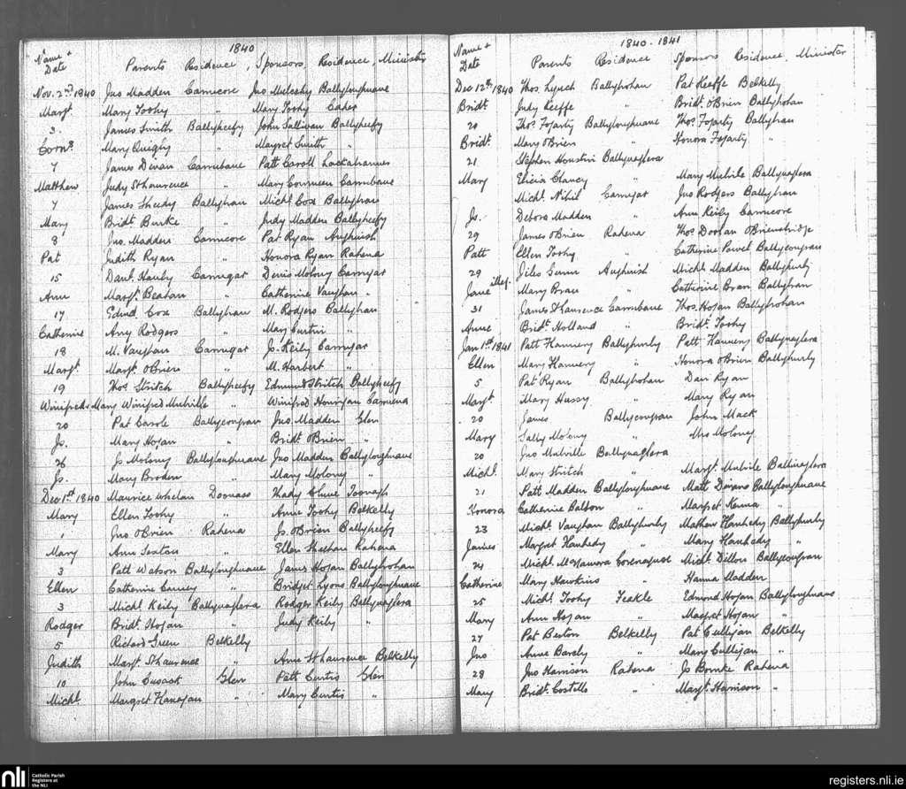 Ogonnelloe; County of Clare; Diocese of Killaloe. Baptisms, Nov. 1840 to Jan. 1841