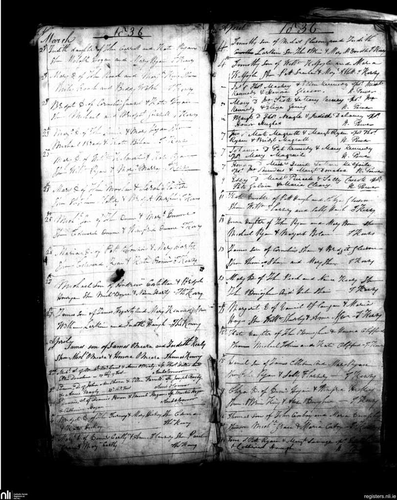 Nenagh; County of Tipperary; Diocese of Killaloe. Baptisms, Mar. 1836 to Apr. 1836