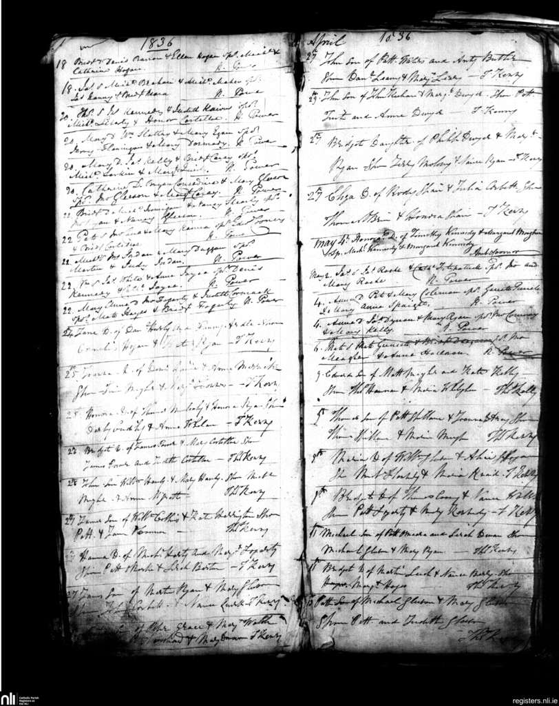 Nenagh; County of Tipperary; Diocese of Killaloe. Baptisms, Apr. 1836 to May 1836