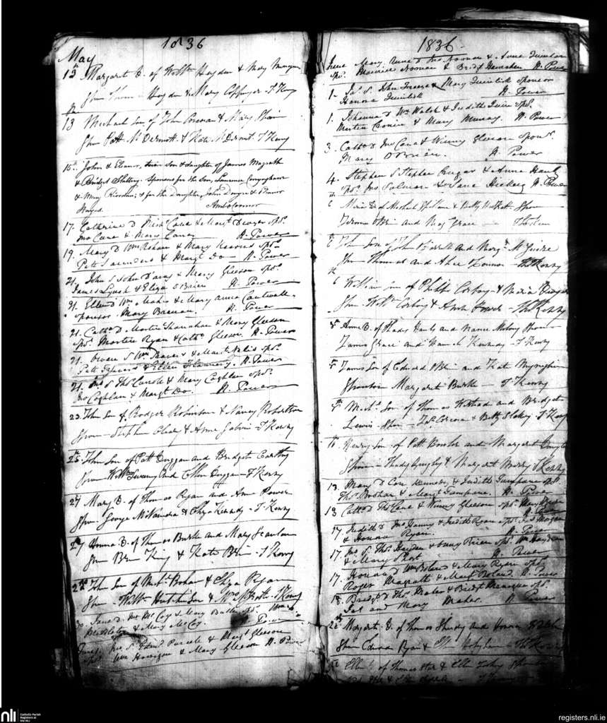Nenagh; County of Tipperary; Diocese of Killaloe. Baptisms, May 1836 to June 1836