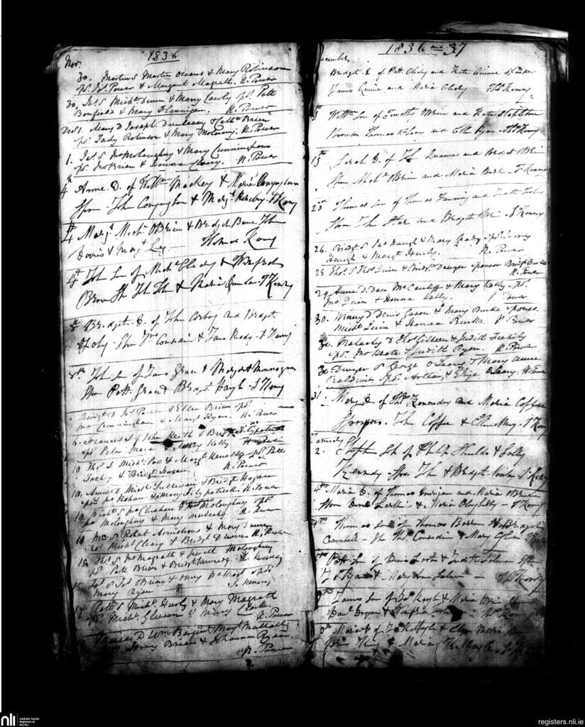 Nenagh; County of Tipperary; Diocese of Killaloe. Baptisms, Nov. 1836 to Jan. 1837