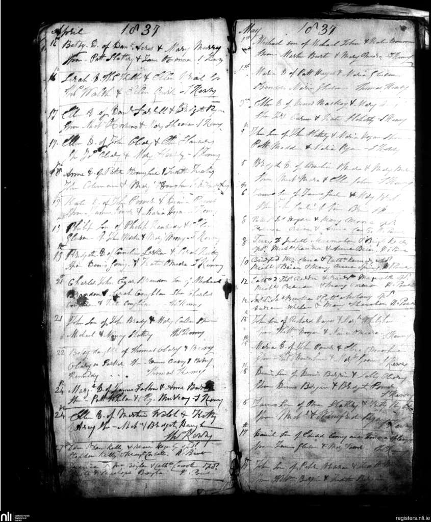 Nenagh; County of Tipperary; Diocese of Killaloe. Baptisms, Apr. 1837 to May 1837