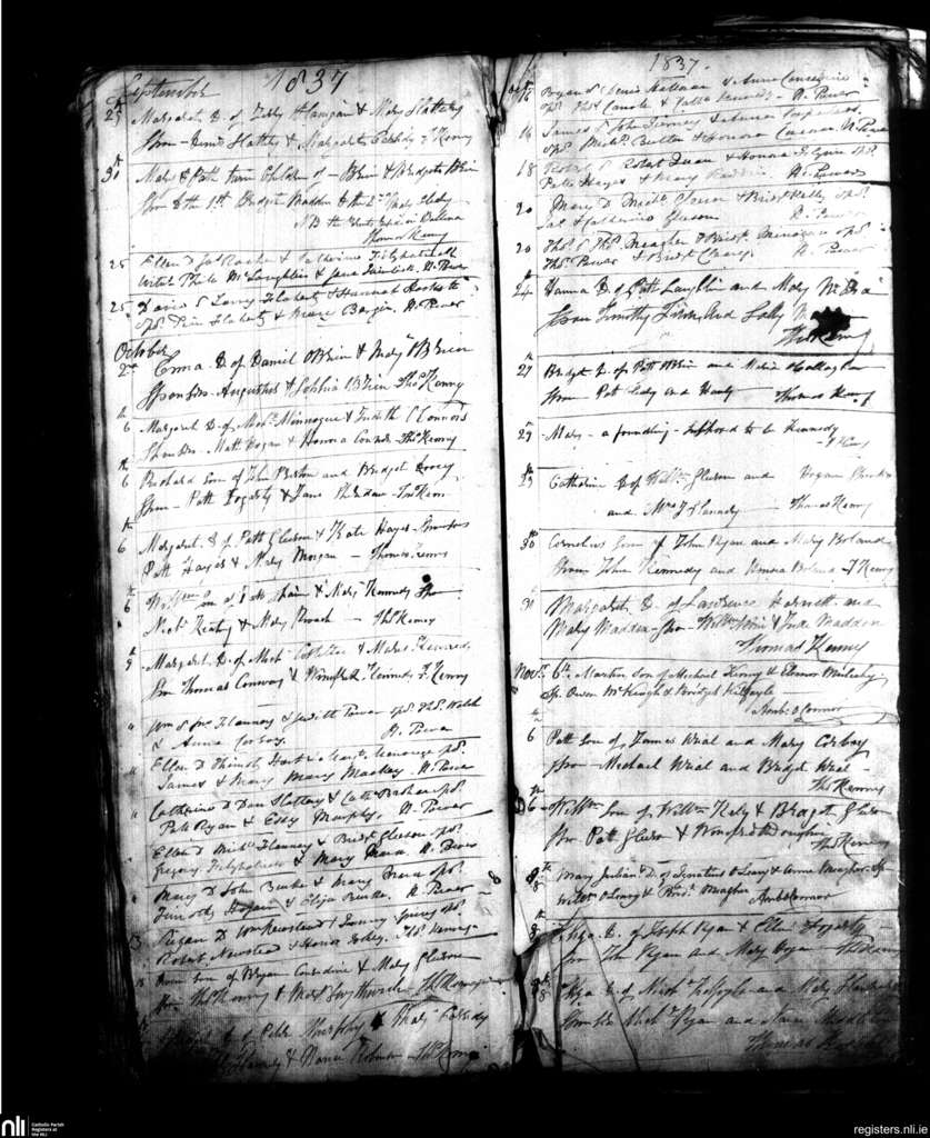 Nenagh; County of Tipperary; Diocese of Killaloe. Baptisms, Sep. 1837 to Nov. 1837