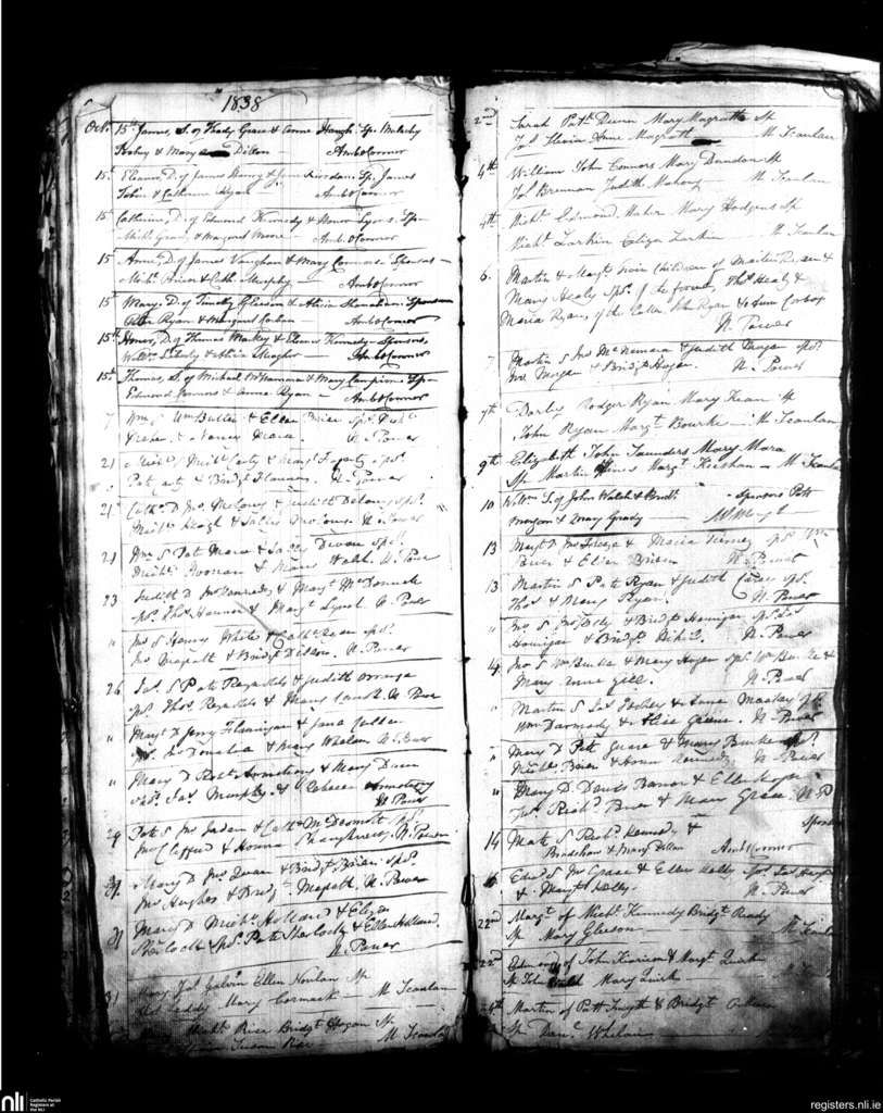 Nenagh; County of Tipperary; Diocese of Killaloe. Baptisms, Oct. 1838 to Nov. 1838