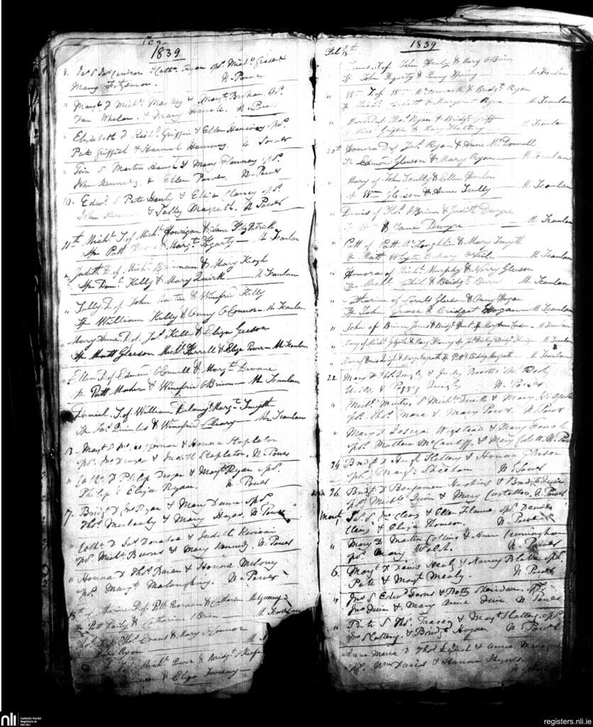 Nenagh; County of Tipperary; Diocese of Killaloe. Baptisms, Feb. 1839 to Mar. 1839