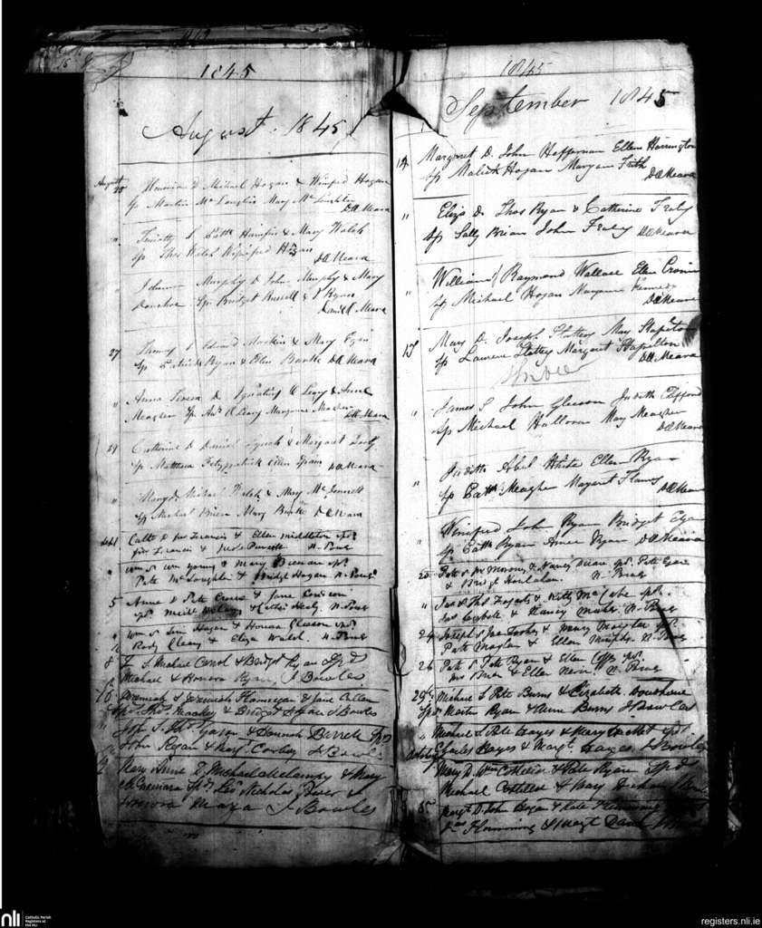 Nenagh; County of Tipperary; Diocese of Killaloe. Baptisms, Aug. 1845 to Oct. 1845