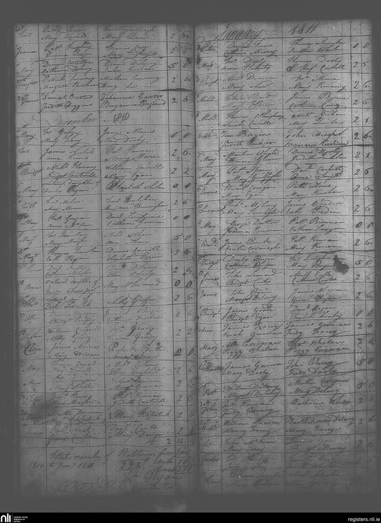 Roscrea; County of Tipperary, Offaly, Laois; Diocese of Killaloe. Baptisms, Nov. 1810 to Jan. 1811