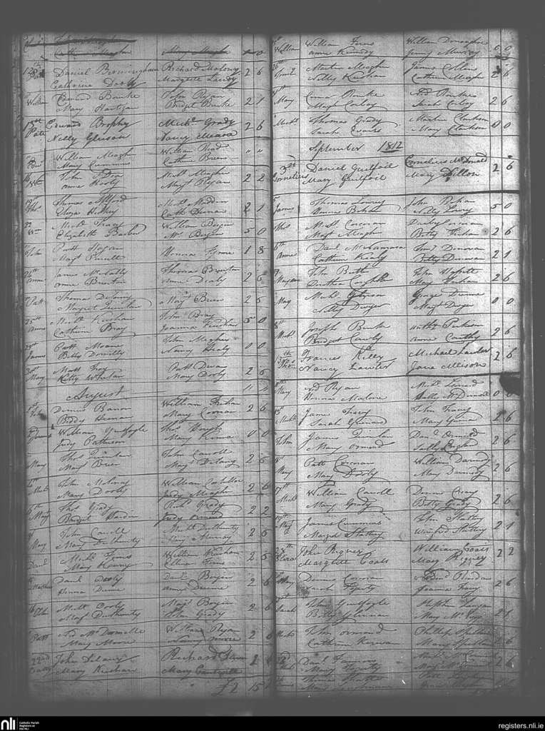 Roscrea; County of Tipperary, Offaly, Laois; Diocese of Killaloe. Baptisms, July 1812 to Sep. 1812