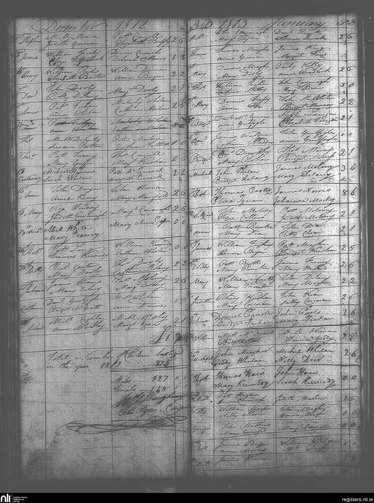 Roscrea; County of Tipperary, Offaly, Laois; Diocese of Killaloe. Baptisms, Dec. 1812 to Jan. 1813
