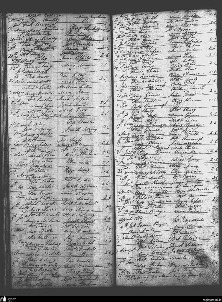 Roscrea; County of Tipperary, Offaly, Laois; Diocese of Killaloe. Baptisms, Feb. 1824 to Apr. 1824