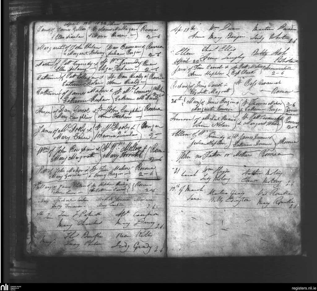 Roscrea; County of Tipperary, Offaly, Laois; Diocese of Killaloe. Baptisms, Apr. 1833