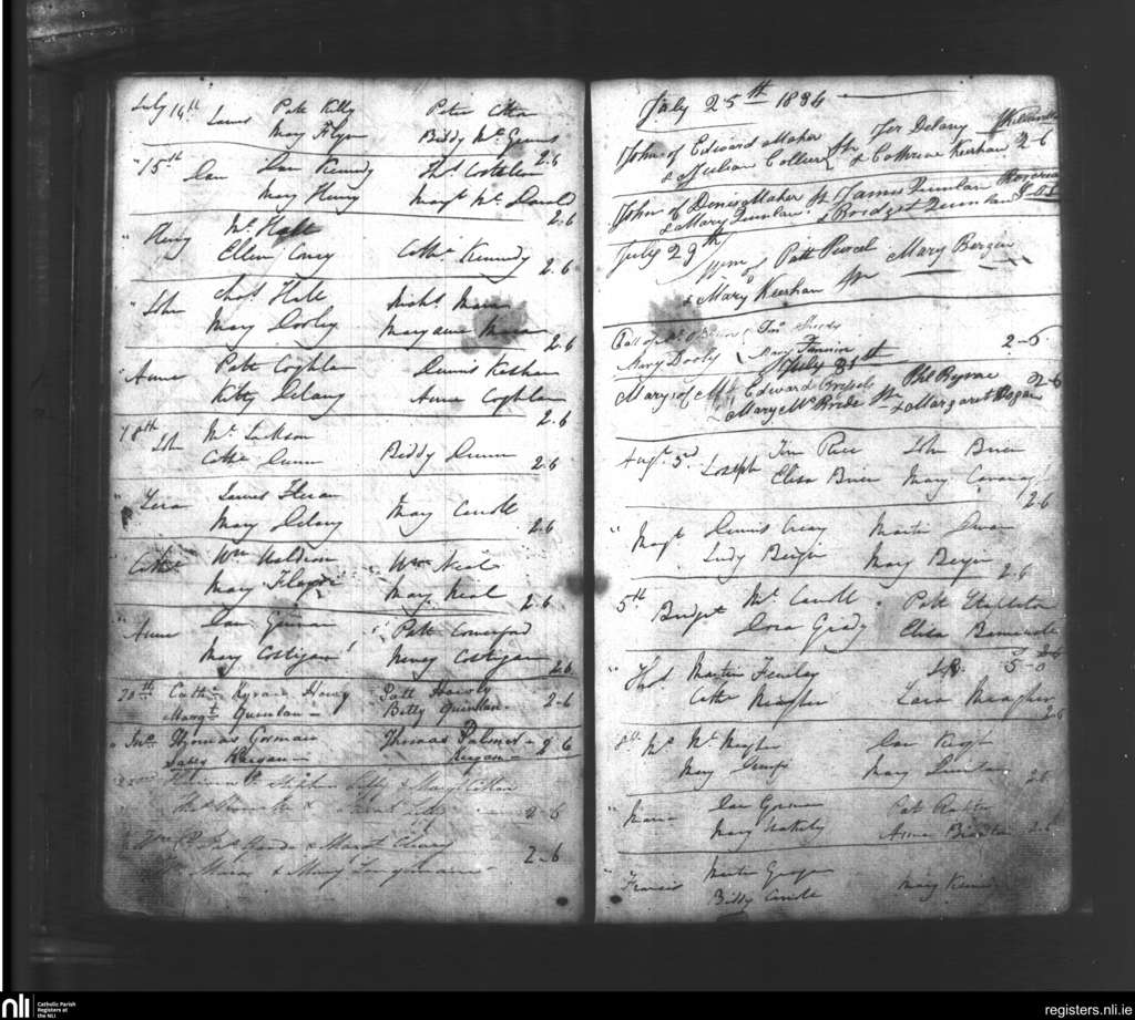 Roscrea; County of Tipperary, Offaly, Laois; Diocese of Killaloe. Baptisms, July 1834 to Aug. 1834
