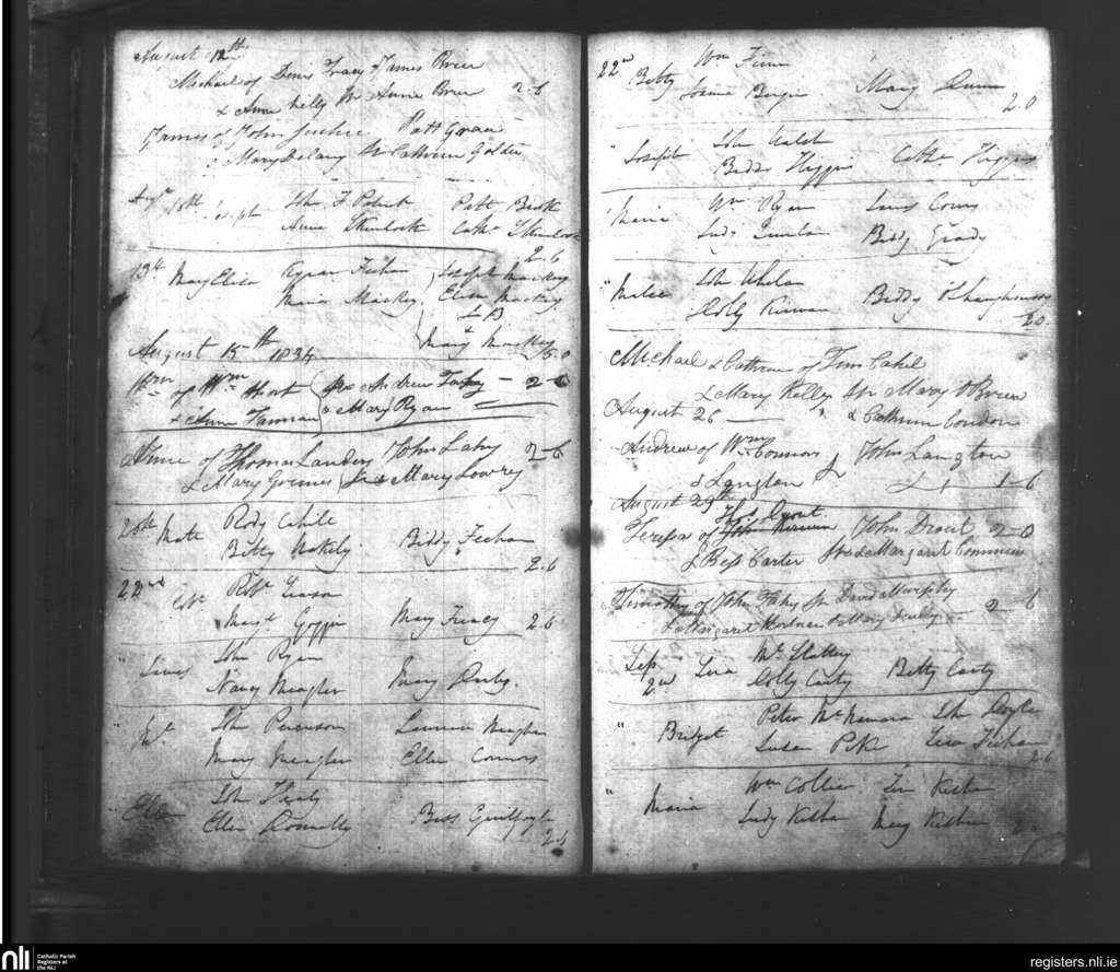 Roscrea; County of Tipperary, Offaly, Laois; Diocese of Killaloe. Baptisms, Aug. 1834 to Sep. 1834