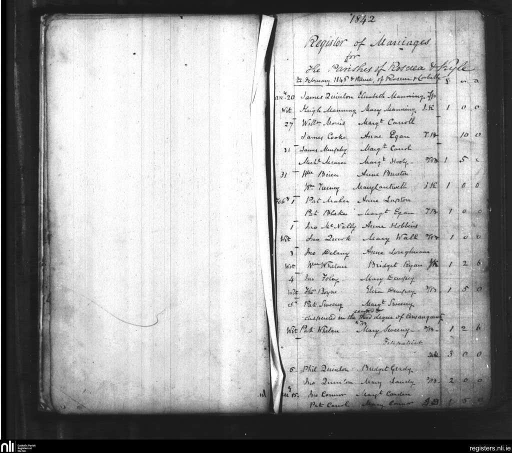 Roscrea; County of Tipperary, Laois, Offaly; Diocese of Killaloe. Marriages, Jan. 1842 to Feb. 1842