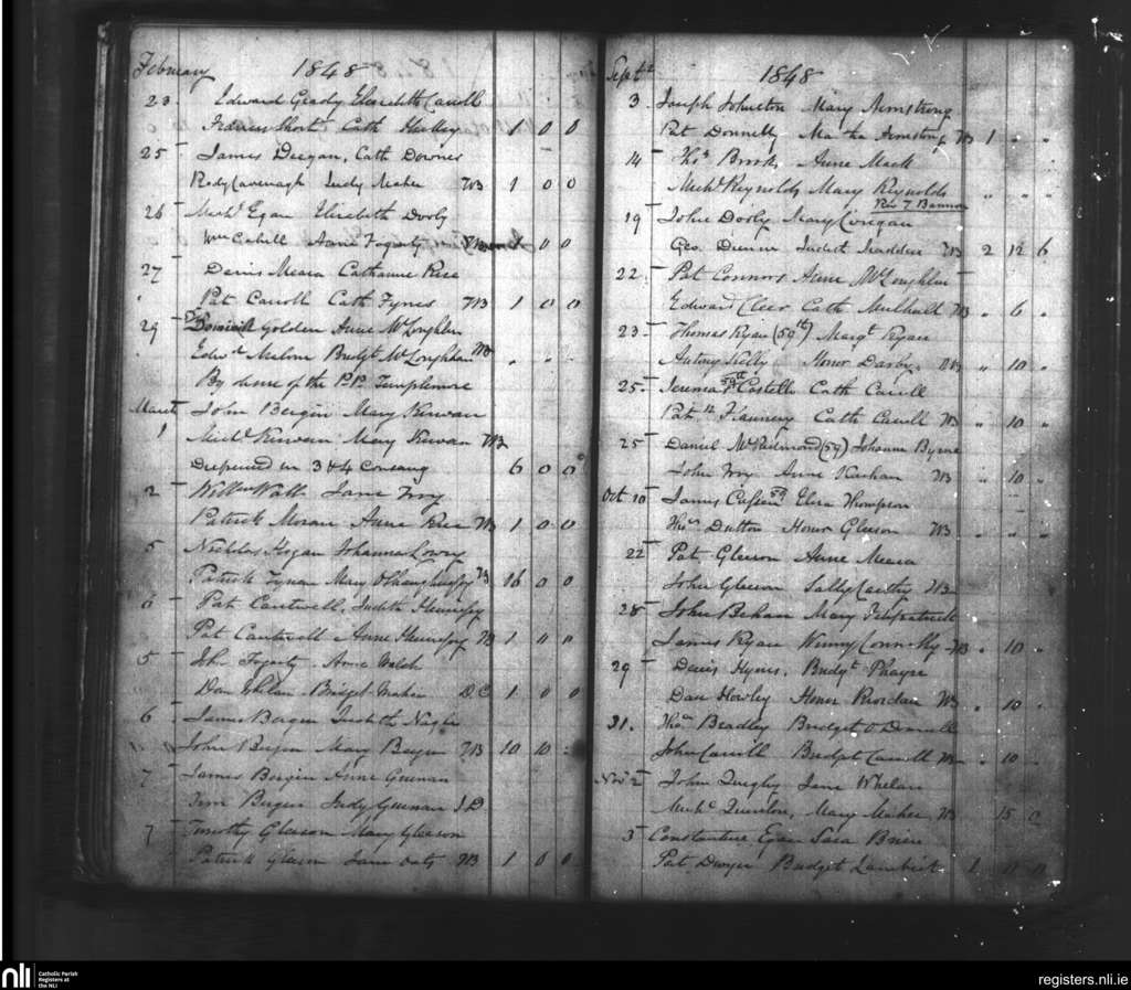 Roscrea; County of Tipperary, Laois, Offaly; Diocese of Killaloe. Marriages, Feb. 1848 to Nov. 1848