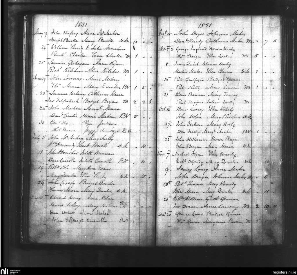 Roscrea; County of Tipperary, Laois, Offaly; Diocese of Killaloe. Marriages, May 1851 to Dec. 1851