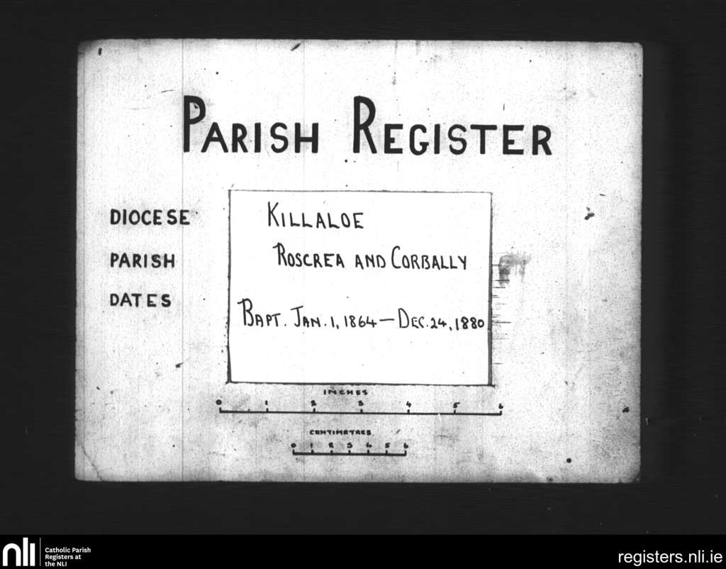 Roscrea; County of Tipperary, Laois, Offaly; Diocese of Killaloe. Baptisms