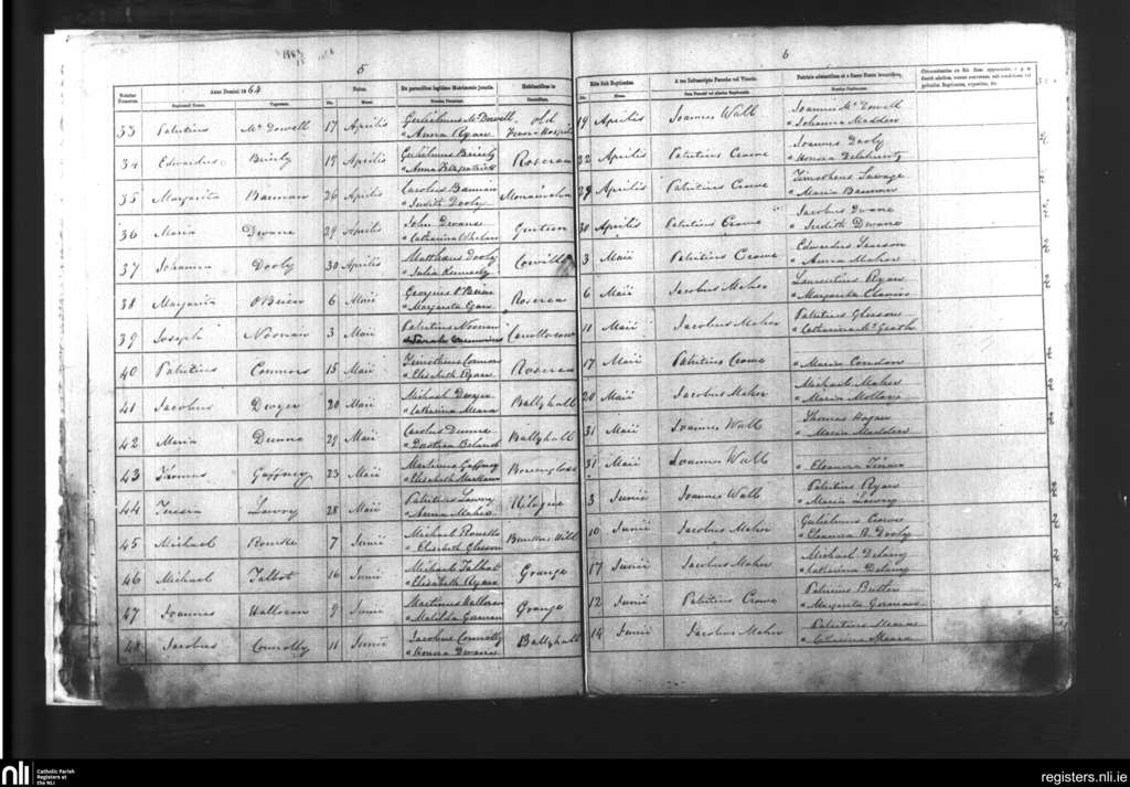 Roscrea; County of Tipperary, Laois, Offaly; Diocese of Killaloe. Baptisms, Apr. 1864 to June 1864
